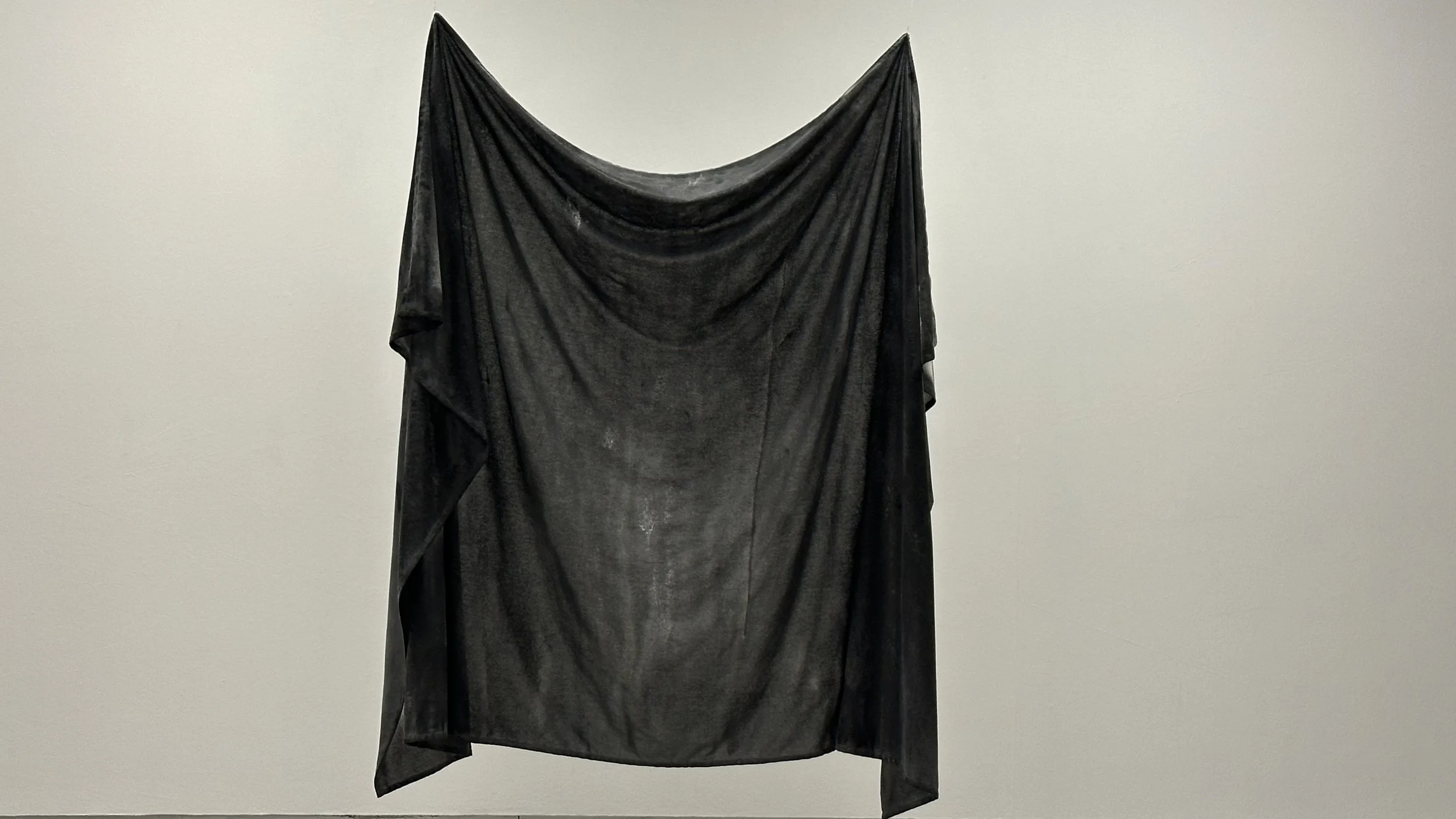 Through the performative act of touching white, floating fabric with ink, I attempted to translate the quiet, daily weight of sorrow and longing—feelings carried by those whose only chance of reunion comes in dreams. The rehearsed performance assumes the participation of other people as an act of manifestation of their invisible experience of indefinite loss. Textiles soaked in starch are solidified in a monumental form as a witness.